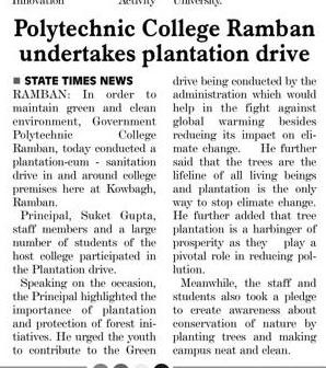 Plantation drive held at Govt Polytechnic Udhampur in presence of Principal Er. Suket Gupta,